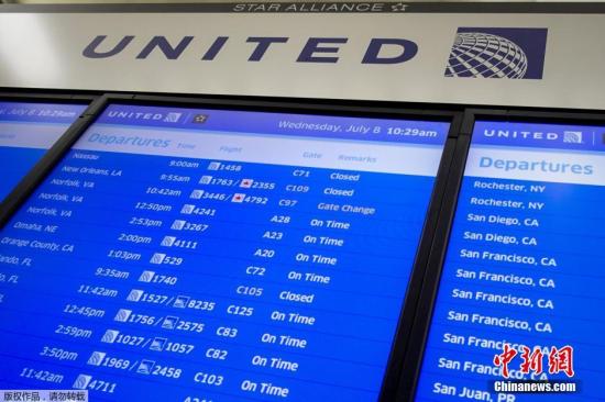 资料图。2015年7月8日,美国联合航空公司电脑系统出现故障,导致其在全美所有机场的航班停飞约2小时。