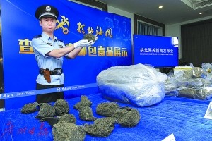 今年3月底,广州海关对一件由尼日利亚寄往广东中山的进口速递包裹进行查验时,发现包裹内夹藏有疑似大麻的物品,经鉴定证实为大麻,净重14.89千克。为防止被查出,邮寄者事先对大麻进行了精心伪装,用保鲜膜把大麻紧紧包裹后,外面涂了一层胶水,胶水上黏着茶叶和辣椒粉,藏匿在一堆劣质茶叶中。