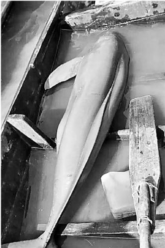 体重80多斤的大江豚在小木船中