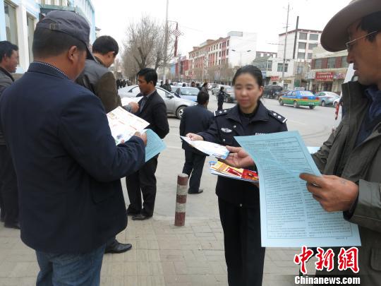 图为缉毒“女将”在街头宣传禁毒知识。 钟欣 摄