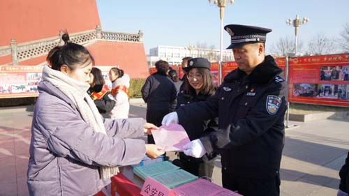 近日,市公安局忻府分局民警走上街头,向市民发放《中华人民共和国宪法》等宣传资料,对市民提出的各类法律问题予以细致解答,赢得了群众的一致好评。
