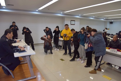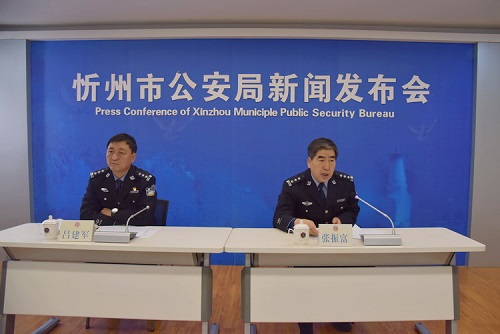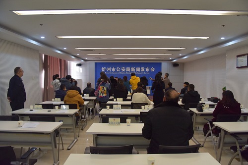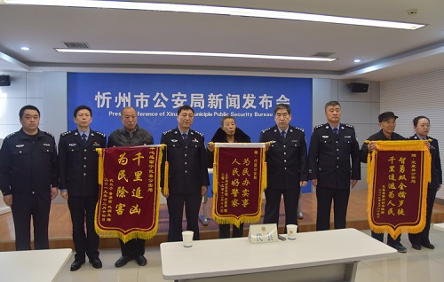 12月19日上午,忻州市公安局在三楼新闻发布室召开新闻发布会,市公安局副局长张振富同志向各新闻媒体通报了2019年以来我市开展追逃工作的有关情况。会议由市公安局党委委员、政治部主任吕建军主持。山西日报、山西晚报、山西法制报、山西青年报等多家驻忻媒体,忻州日报、忻州电视台、忻州网等我市新闻媒体记者应邀参加发布会。定襄县、代县、宁武县公安局追逃民警代表及三位受害者家属参加了发布会,并现场向公安机关赠送了锦旗,表达谢意。