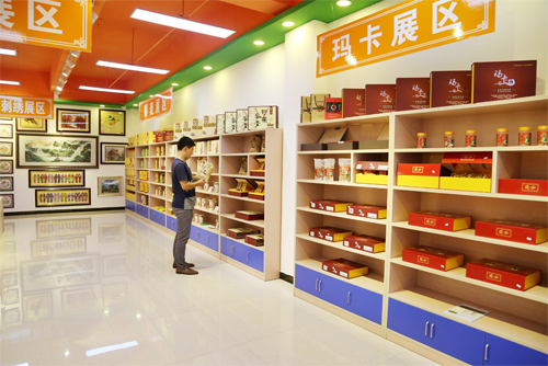 8月15日,在静乐县政府投资兴建的静乐特色馆展区内,市民正在参观选购产品。该特色馆整合了静乐县特色产品市场资源,全力打造特色产品体验展销新平台,大大提升了静乐特色产品的市场竞争力。(闫晓梅 摄)