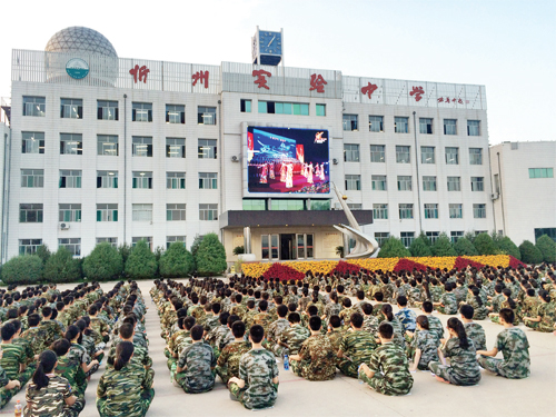 近期,我市高中陆续组织开展新生军训工作,旨在通过军事化的训练培养和增强学生国防意识、集体意识,并进一步锤炼意志,增强体质,为高中三年的学习生活打下坚实基础。图为八月二十一日,忻州市实验中学新生在军训间隙观看学校宣传片。(实习记者 郭浩东 摄)