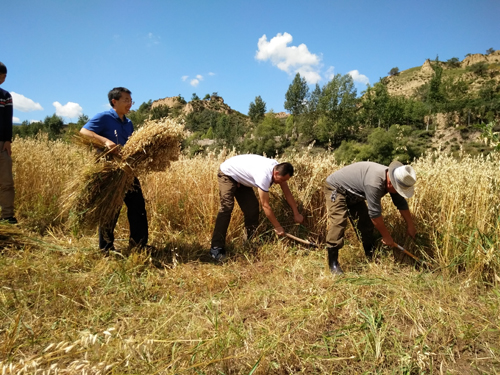 秋高气爽,硕果累累。进入农忙时节,宁武县的第一书记们,自发地深入到田间地头,和农民一起劳作,享受收获的喜悦。图为第一书记们正在帮农民收割莜麦