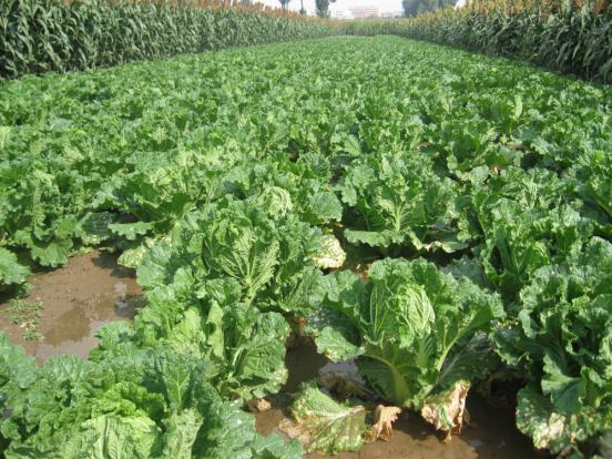 河曲县南元村回茬大白菜,是晋陕蒙三角地区顶呱呱的招牌菜;每到晚秋,开车直接到地里买菜的县内外群众络绎不绝。入秋以来,菜农在锄草、施肥、浇水、打药等多个环节进行科学管理,精心呵护,力求大白菜个头大、包心实、卖相好、收入高。图为刚刚浇过水的大白菜,叶子间还闪着水光呢。(贾金理 摄)