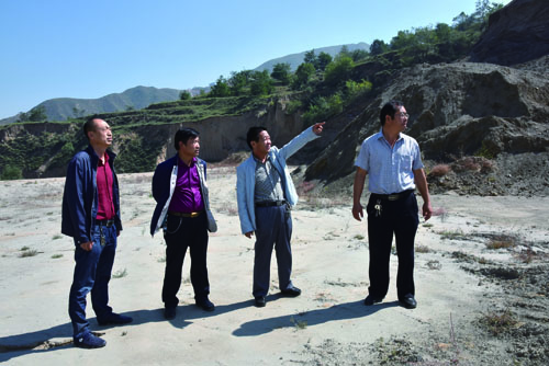 村支部何计所与镇领导检查填沟造地工程。