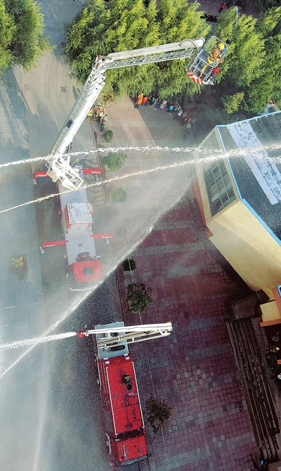9月26日,在忻州师范学院内,当地消防部门举行了国庆节前应急疏散演练,其中包括灭火器材使用、火场逃生自救等演练项目