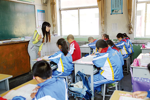 9月22日,在静乐县西坡崖小学,今年新招收的特岗教师正在给学生上课。新学期开学后,有40名新招收的特岗教师到该县乡村任教。据统计,自2009年以来,按照国家对贫困县教育倾斜的政策,先后有365名大学毕业生通过统一考试,来到静乐县山区学校担任特岗教师。 (闫晓梅 摄)