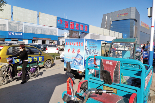 瑞新装饰城外机动车、三轮车占用人行道、盲道乱停乱放