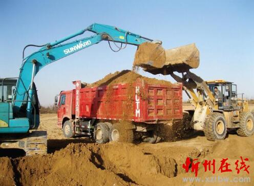 11月14日,河曲县新建县城应急供水工程工地上,挖掘机、推土机正在一起开挖蓄水池。该工程主要包括2440米输水管线和3000立方米蓄水池,设计输水能力为每小时150立方米。建成后,将进一步增强市政设施保障功能,解决用水高峰水量不足问题,确保7万多人正常用水。(贾金理 摄)