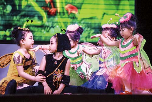 鸡年喜空前,少儿展风彩。原平鸡年春晚,又一次成为该市少儿才艺展示的大平台。舞蹈《时针时针快快跑》在溢光流彩的背景映衬下,孩子们通过别致的“时针”演示,揭示了“时不我待,与时俱进”的主题;30人阵容的《器乐联奏》,孩子们手脑并用,或高山流水,或丝丝细语,彰显了蓓蕾初放的良好势头;语言朗诵《四季诗》既展示了孩子们清晰的口才,又让人们感知了唐诗宋词的魅力;大型舞蹈《盛世欢腾》格调高昂,催人奋进,孩子们龙腾虎跃的动作,展现出盛世美景,歌颂了全国人民实现中华民族伟大复兴的动人图腾。这台别开生面的鸡年少儿春晚,将给该市50万干部群众送上一道“色香味美”的春节文化大餐。图为童话剧《迷路的小蚂蚁》演出现场(蔺红/文 刘建春/图)