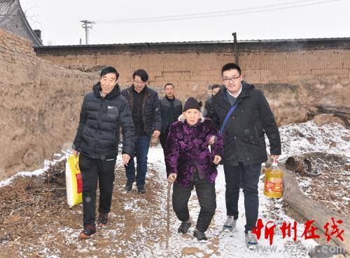 顶风冒雪送温暖,亲切关怀暖人心。1月5日上午,代县新闻办公室主任石俊文带领帮扶工作队员与上馆镇包村干部李德元、胡晋恒、村第一书记赵昊,一同踏着腊八雪花,冒着凛冽寒风,走巷串户,先后走访慰问了李长绪、张桂英、赵二女、孙妙叶、祖光业、李秀枝、张万荣、段改鱼等8户所帮扶八里庄村的特困群众,为他们送去白面、大米和食用油,将党和政府的关怀和温暖送到他们心坎上,祝愿他们度过一个欢乐祥和的春节和元宵节。(刘永福)