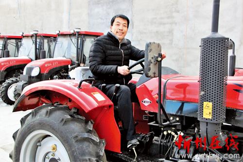 2月25日,原平市上封村村民孟宝生在该市农机公司购买了一台东方红牌拖拉机,享受政府农机补贴,高高兴兴开回家。原平市农机公司发挥农机供应主渠道作用,积极组织农机货源,大中小不同型号、平地山坡地耕播旋功能等农机具品种齐全,满足了农民春耕备耕生产需求。(吉建平 摄)