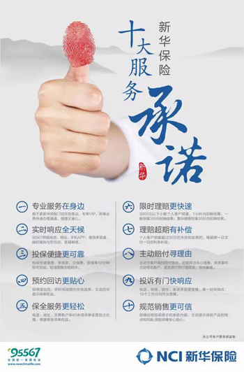 数十万新华人满怀诚意向您庄严宣誓“十大服务承诺”,竭诚为您提供便捷、专业的保险金融服务!