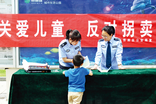 本报讯 近日,为进一步提高人民群众特别是广大少年儿童的防拐意识和防拐能力,忻府区公安局刑侦大队民警在体育广场开展了以“关爱儿童、反对拐卖”为主题的打拐宣传活动。