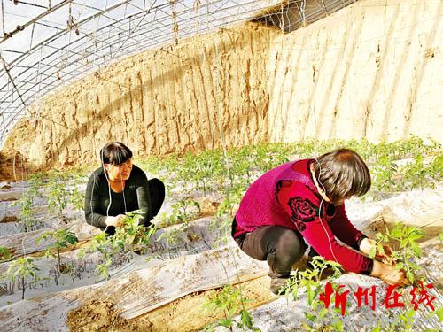 冷风呼啸,五台县阳白乡的室外气温已到了零下,然而,大棚里高达20多度的温度给了西红柿苗一个温暖的生长环境,农民们正在棚里精心打理西红柿苗,棚里棚外俨然“两重天”。得益于温室大棚,农民能在不适宜蔬果生长的气候下种植蔬果,随着大棚种植技术的成熟,大棚蔬果的产量和质量逐步提升。大棚种植带动了当地的就业和经济发展,给农民带来新的致富希望。(王阳 摄)