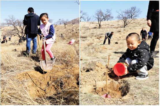 3月24日,原平市义务植树活动在天牙山大峡谷进行,来自各行各业的志愿者一大早就来到植树点,挖坑栽苗、培土、浇水、挂牌。一株株树苗挂上了亲子树、爱情树、孝敬树、长寿树等“名字”,承载着人们的美好盼望。吉建平摄