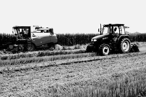 7月8日,原平市平地泉村小麦夏收实施套餐作业,大型收割机前面收麦子,后面紧跟秸秆还田机将麦秸秆粉碎还田,两机同时作业,让百姓拍手叫好:“我们再也不用烧秸秆了”!吉建平 摄
