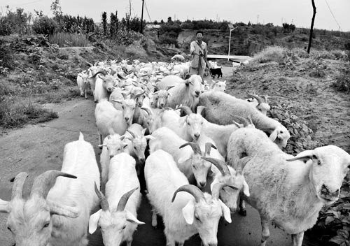 8月2日,河曲县文笔镇岱岳殿村农民李师子正准备出门放羊。今年69岁的他因2015年一场大病导致贫困,当时筹措手术费变卖了自己的80只羊,一群羊所剩无几。病愈后,在当地政府的关心和国家扶贫政策的支持下,又为他添购了15只“扶贫羊”,经过两年多的精心饲养繁殖,现在羊存栏增加到105只,一举摘掉了贫困帽子。(邬耿杰 摄)
