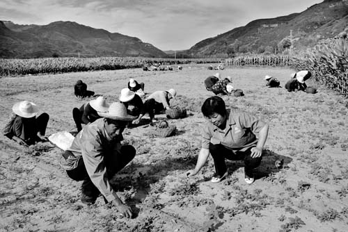 五台县耿镇北月池村农民张永红种药材290亩,成立了“百味药材种植专业合作社”,有社员25人,其中贫困户16人,药材直销山西百草绿源中药材有限公司。去年,种植60亩获得收益11万元,今年大部分到了收获期,预计创收47万元,社员人均1.9万元。贫困户史书梅说:“今年咱已干活4个月,拿到了7200元的工资,不拖欠一分钱,合作社真是咱致富的家。”图为跟随劳动的农民工。金俊贤 摄
