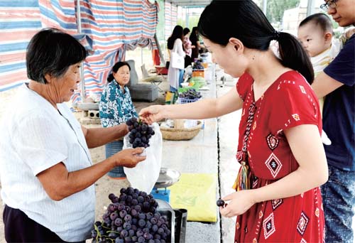 9月9日,河曲县焦尾城村葡萄交易市场,迎来一拨又一拨选购葡萄的顾客。该村大力发展无公害绿色葡萄项目,所产葡萄酸甜适度,口感极佳,在广大消费者心目中树立了良好的品牌形象。