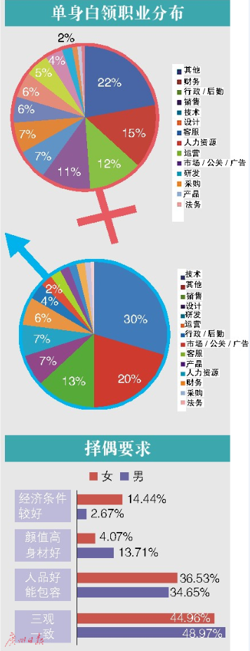 此外,职场单身男女的择偶标准以三观一致和人品好为基本,但男性更看重颜值和身材;女性则更看重经济条件。(记者 何颖思 通讯员 杨洁竺)