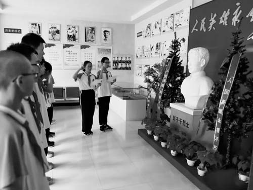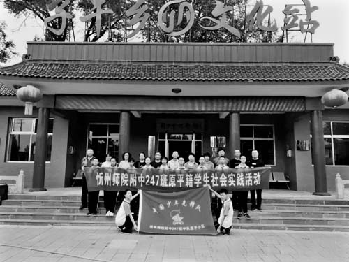 本报讯近日,忻州师院附中初247班原平籍11名学子及家长共计24人,怀着对革命烈士的敬仰、对老区人民的厚爱,走进刘子干纪念馆宣誓立志,追寻方璧烈士革命意志,感受神岗头小学生求学艰辛,了解下西岗贫困村精准扶贫,使同学们暑期社会实践意义非凡,不忘初心牢记使命已深深扎根于心中。努力学习,增长本领,为老区热土服务,让老区人民脱贫,成为同学们立志奋斗的理想! 赵楚帆 摄