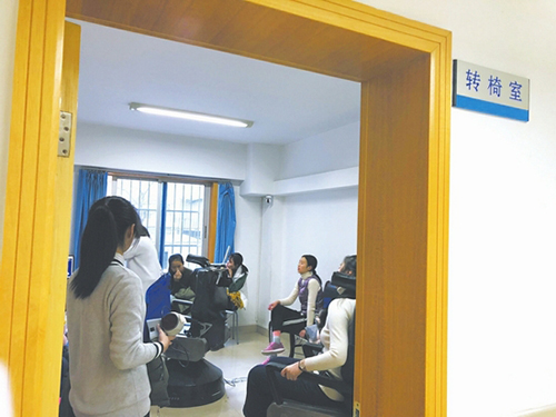 在转椅室,受检女生要坐上特制的转椅,头靠椅背的托架上,以2秒/圈的速度匀速转圈,持续49圈。