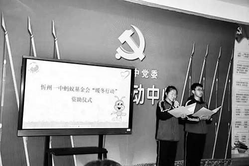 本报讯 1月8日下午,忻州一中蚂蚁基金会在慎思楼五层会议室举行了“暖冬行动”资助仪式。部分校领导、各年级主任及蚂蚁基金会成员参加了资助仪式。33名同学受到了资助。
