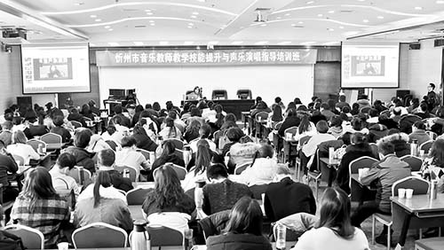 本报讯 音乐是校园文化的重要组成部分。为进一步贯彻落实《教育部关于大力加强中小学教师培训工作的意见》和《忻州市人民政府关于改革创新全面振兴忻州教育的实施意见》精神,进一步加强我市薄弱学科教师队伍建设,充分发挥音体美学科在实施素质教育中的重要作用,1月15日到20日,忻州市教育局举办了全市小学音乐教师教学技能提升与声乐演唱指导培训班,对我市小学音乐教师进行教材教法与专业技能培训,来自各县(市、区)和市直小学共245名音乐教师参加了培训。