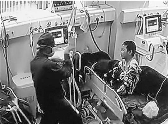 记者通过病房里的监控看到了胡医生在洋洋面前耍拳的画面。当时洋洋盘着腿坐在病床上大哭,“猴哥”一边对着他耍拳,一边拗出搞笑的造型。