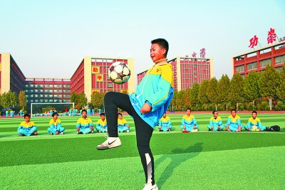 10月25日,河北省衡水市志臻学校安平校区,学生进行足球颠球项目比赛。本报记者 郭俊锋摄/光明图片