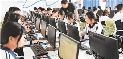 河北省邯郸市涉县职业教育中心电子商务专业学生在校内项目实训基地进行客服实践。郝群英摄(人民图片)
