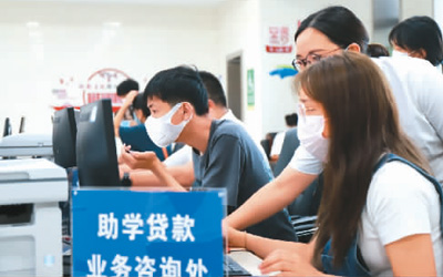 今年8月9日,在贵州省黔西市人民政府政务服务中心,志愿者在为大学生办理信用助学贷款。新华社发