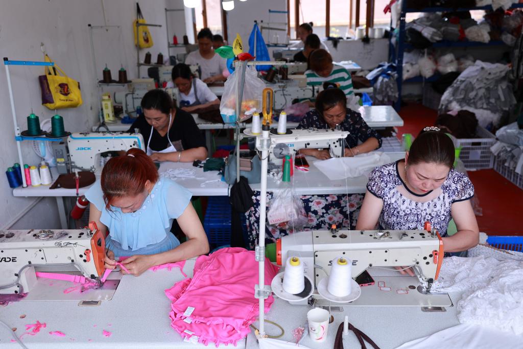 2023年7月18日,山东省无棣县棣丰街道贾店村居民在微工厂内忙碌。目前,棣丰街道已发展微工厂9家,带动就业400余人。新华社记者朱峥 摄