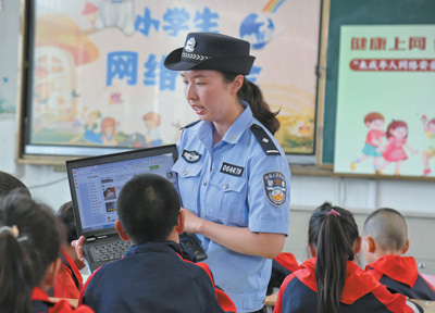 江苏省海安市公安局墩头派出所民警在学校引导学生安全上网、文明上网。周 强摄(人民视觉)