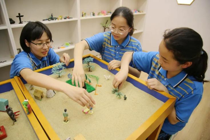 2023年5月30日,在湖北省十堰市郧阳区一中,高三学生在学校的沙盘室内通过摆放物件释放压力。通讯员 曹忠宏 宋红梅 摄