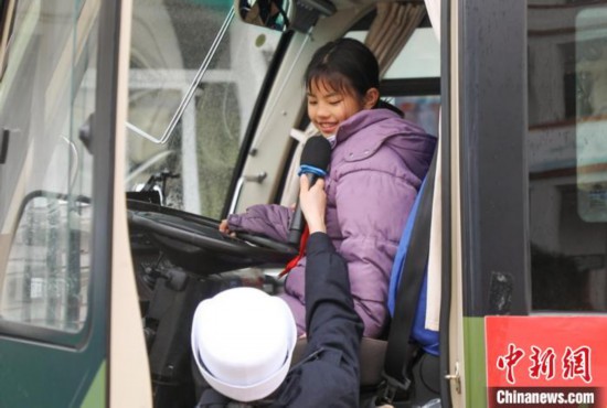 图为交警工作人员邀请学生登上大车驾驶室,感受车辆盲区,以学生喜闻乐见的方式普及交通安全知识。 王治康 摄