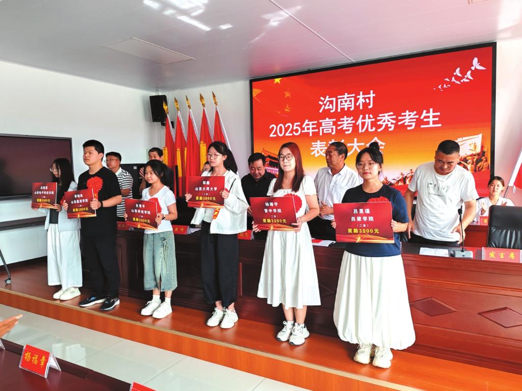 8月26日,五台县沟南乡沟南村举行2025年度高考优秀学生表彰奖励大会,对本村高考成绩优异的学生予以表彰。作为省、市、县三级文明村,沟南村历来有尊师重教的优良传统,近年来更是将鼓励学生成才作为乡村振兴的重要抓手,每年定期对高考中取得优秀成绩的本村学生进行表彰。截至目前,该村累计发放奖金超10万元。高峰毅摄