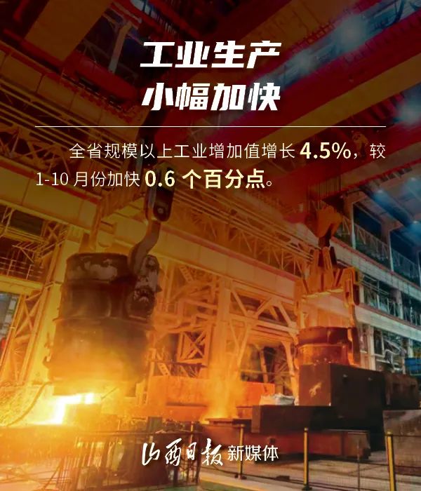 12月20日,省统计局发布1至11月份山西经济运行情况。1至11月份,山西扎实推动高质量发展,稳增长政策效应持续释放,主要指标增势良好,工业生产小幅加快,消费市场稳步复苏,就业物价总体平稳,经济运行稳中向好。一组海报了解1至11月山西经济成绩单。