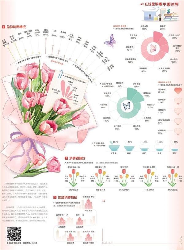伴随社会地位和经济实力的不断提高,女性的消费观念和习惯正在发生转变,她们在扮演好社会赋予的各种角色的同时,愈加认可自我价值,更加关注“为自己投资”“让自己快乐”。数据显示,女性群体在文化旅游、运动户外、医疗保健等方面的消费占比均有明显增长,深度悦己、自我提升、健康养生成为她们的生活关键词。