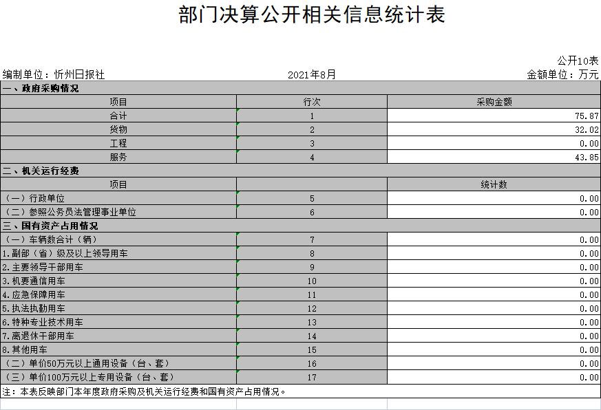 10、部门决算公开相关信息统计表