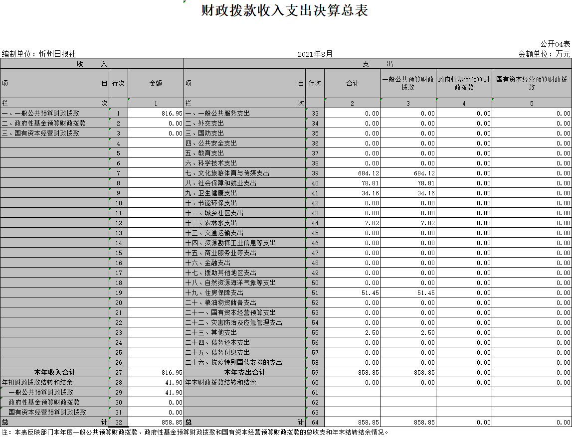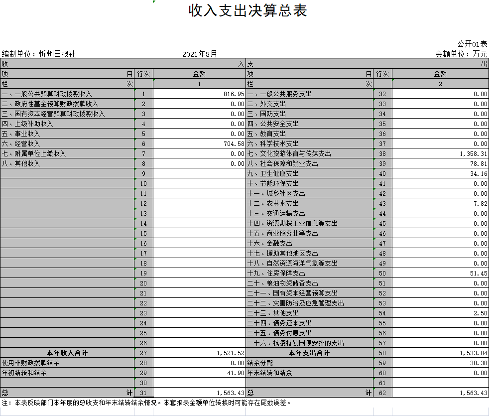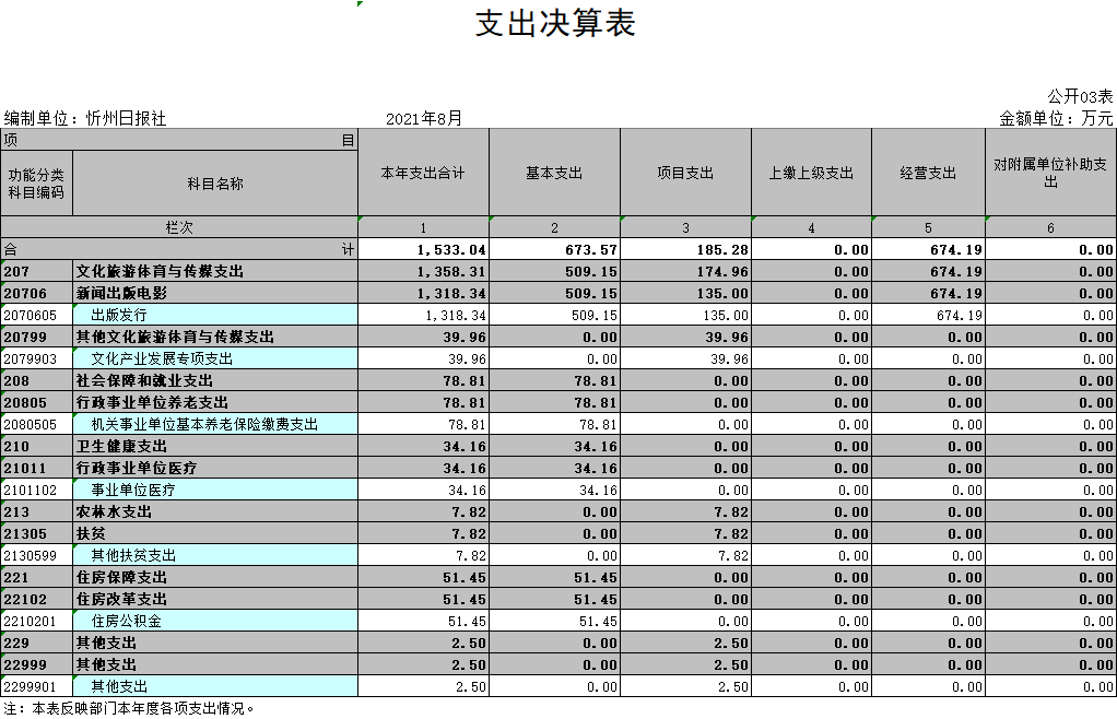 忻州日报社2020年度部门决算及“三公”经费决算公开情况