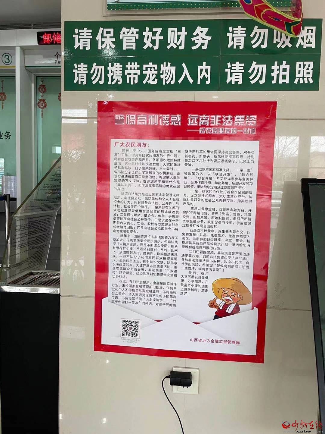 同时,在行内大厅设立防范非法集资、防范电信诈骗现场咨询台,并摆放相关知识宣传手册,向客户进行金融知识、理财知识、防范电信诈骗的知识,现场对客户的问题进行解答。本次宣传活动,共接待过往群众120余人,发放各类资料480余份。
