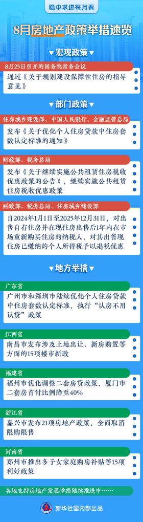 近段时间,相关部门陆续释放地产领域积极政策信号:8月初,中国人民银行在部署下半年工作时明确提出“继续引导个人住房贷款利率和首付比例下行”;近日,住房城乡建设部等三部门给出了“认房不认贷”政策具体实施标准;财政部还公布了两项针对房地产市场的税收优惠政策。