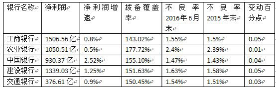 截至2016年6月末,五大行的不良率均较2015年末有所上升。