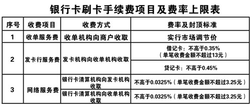 据了解,银行卡刷卡手续费主要是发卡机构收取的发卡行服务费、银行卡清算机构收取的网络服务费和收单机构收取的收单服务费。根据新规,发卡行服务费、网络服务费费率水平将降低,收单环节服务费将实行市场调节价。