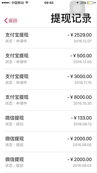 咸蛋家某用户部分提现记录(截至12月7日)。