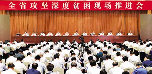 去年6月19日,省委在忻州召开全省攻坚深度贫困现场推进会,也是省委中心组扩大的专题学习会。会议分析了一年来全省攻坚深度贫困形势,坚持目标和问题导向,激励干部更好担当作为,强化精准用力举措,下足绣花功夫,为坚决打赢脱贫攻坚战奠定扎实基础。省委书记骆惠宁出席会议并讲话。他强调,要认真学习贯彻习近平总书记对打赢脱贫攻坚战三年行动的重要指示,按照中央指导意见及省委部署,咬定总攻目标,落细攻击点位,完善督战机制,夺取战役全胜。打赢三年脱贫攻坚战,必须牢牢抓住主要矛盾、聚焦深度贫困,做到焦点不散、靶心不变,持续用力、尽锐出战,以攻坚深度贫困带动面上扶贫工作。国务院扶贫开发领导小组副组长、国务院扶贫办主任刘永富出席会议并讲话。省委副书记、省长楼阳生主持会议。忻州等六市县分别作了表态发言。